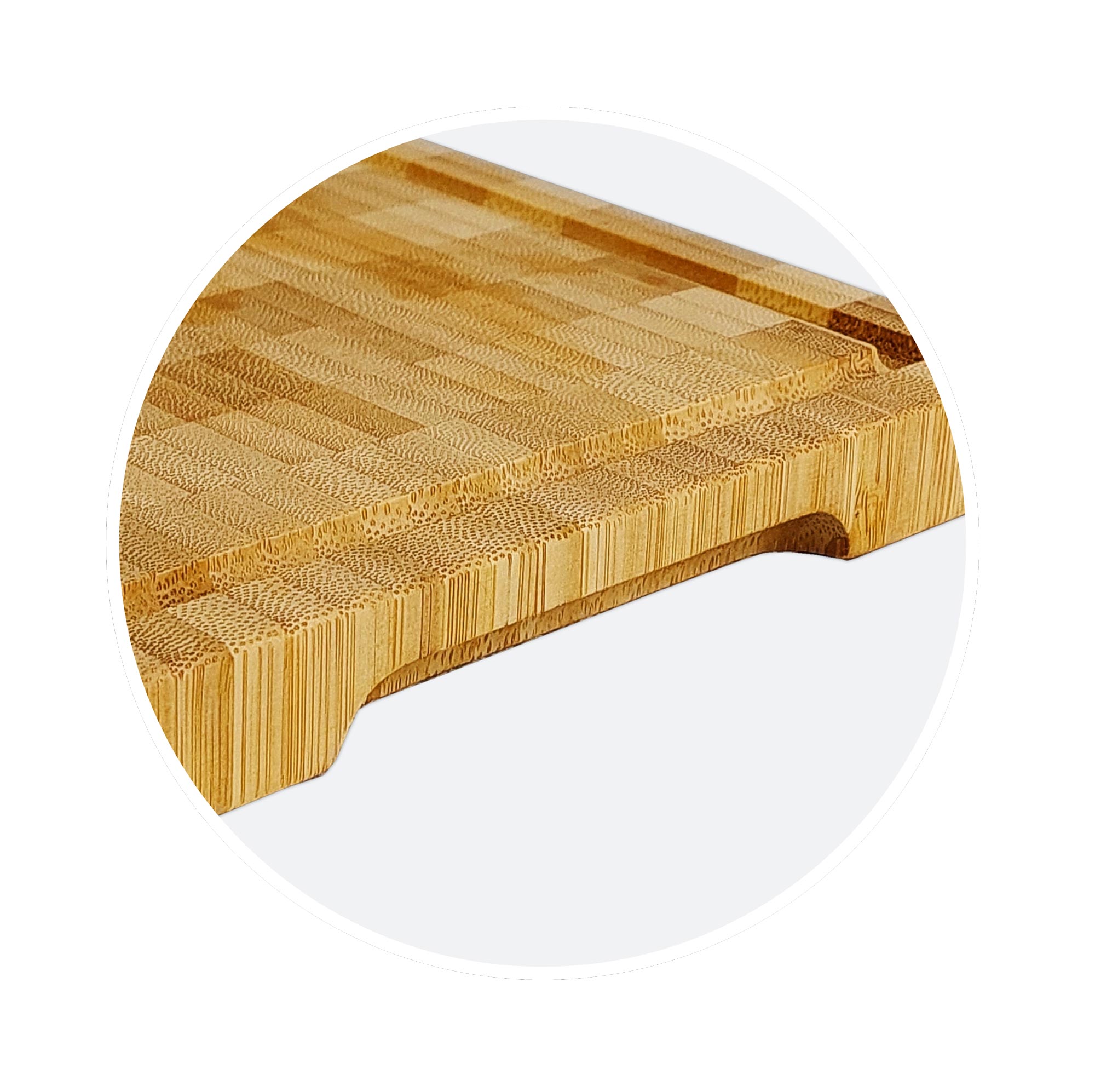Die senkrechte Faserstruktur sorgt für besondere Schnittfestigkeit und schont die Messer-Klingen.