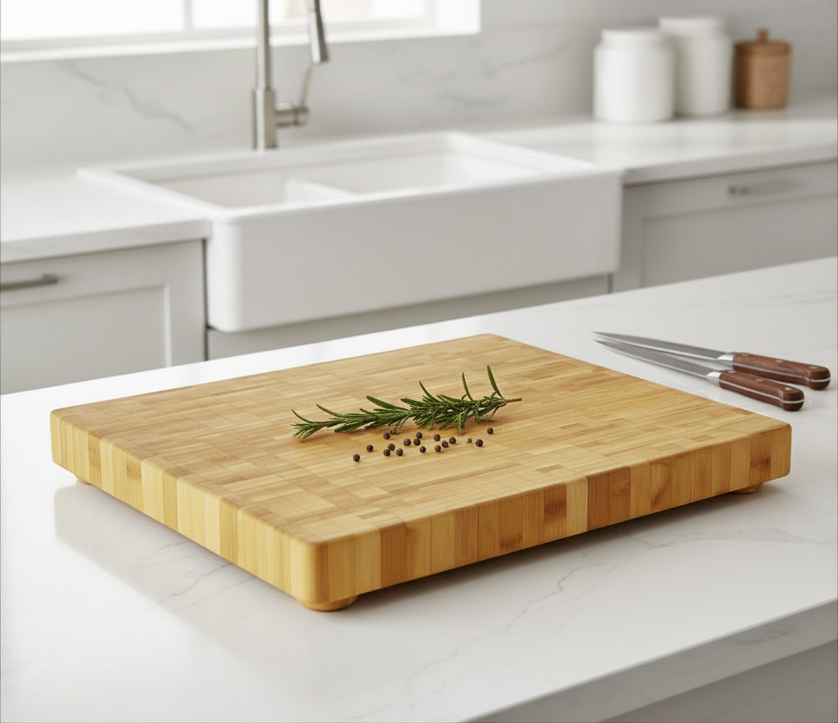 - Schnittfeste und messerschonende Hirnholz-Oberfläche