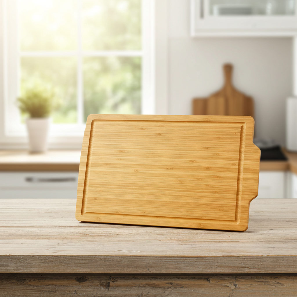 Schneidebrett mit eingelassener Saftrille und Mulde