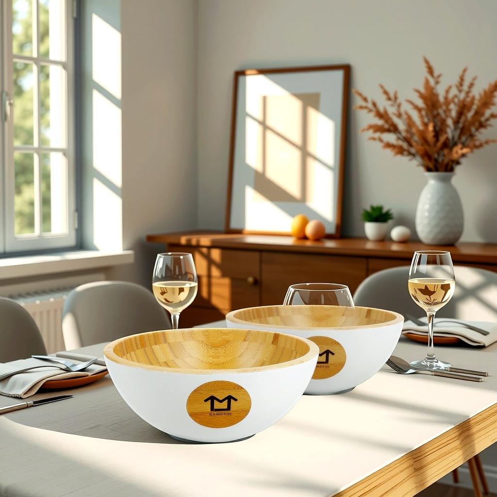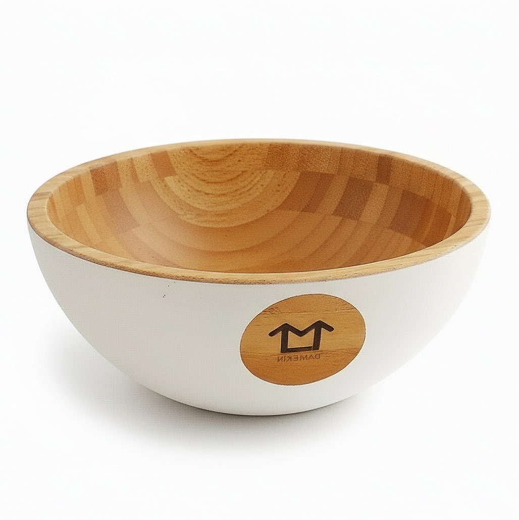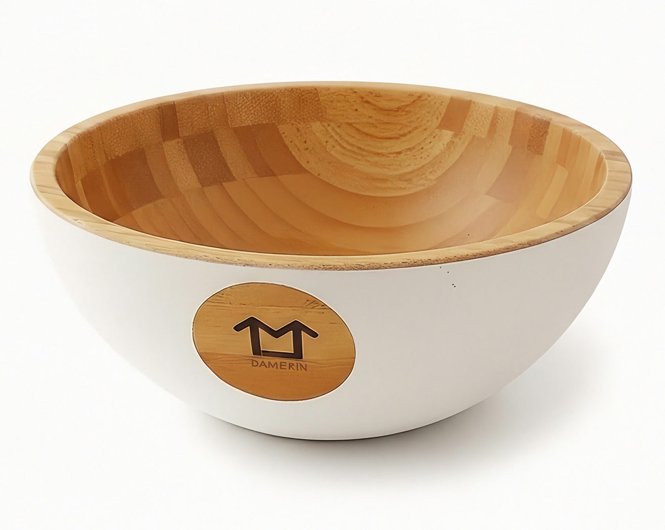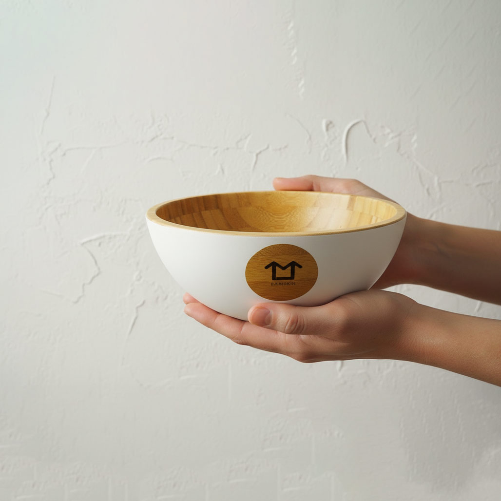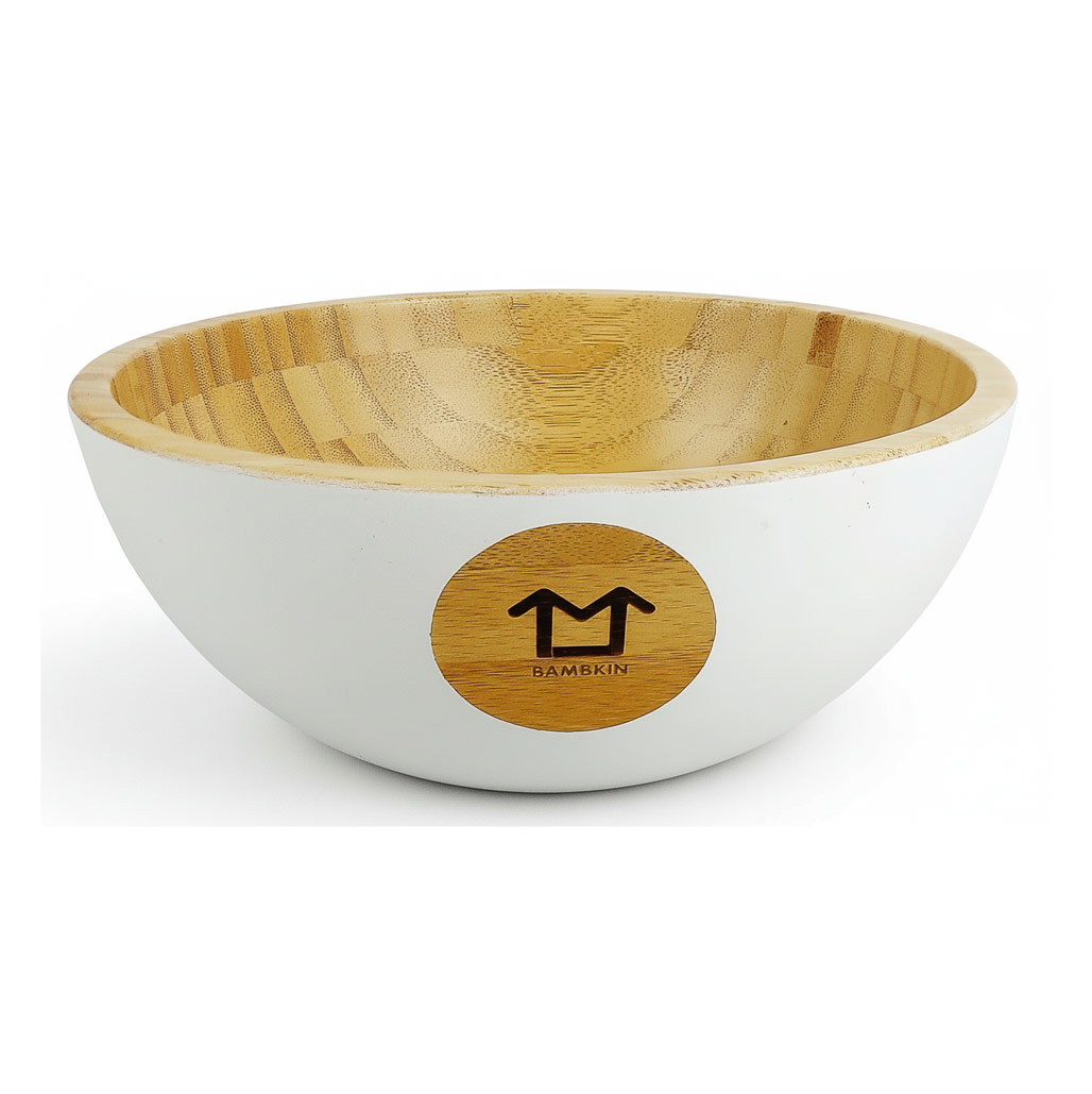 Die Innenseite zeigt die unverwechselbare Bambus-Musterung. Die Außenseite ist im matten Weiß pulverbeschichtet.