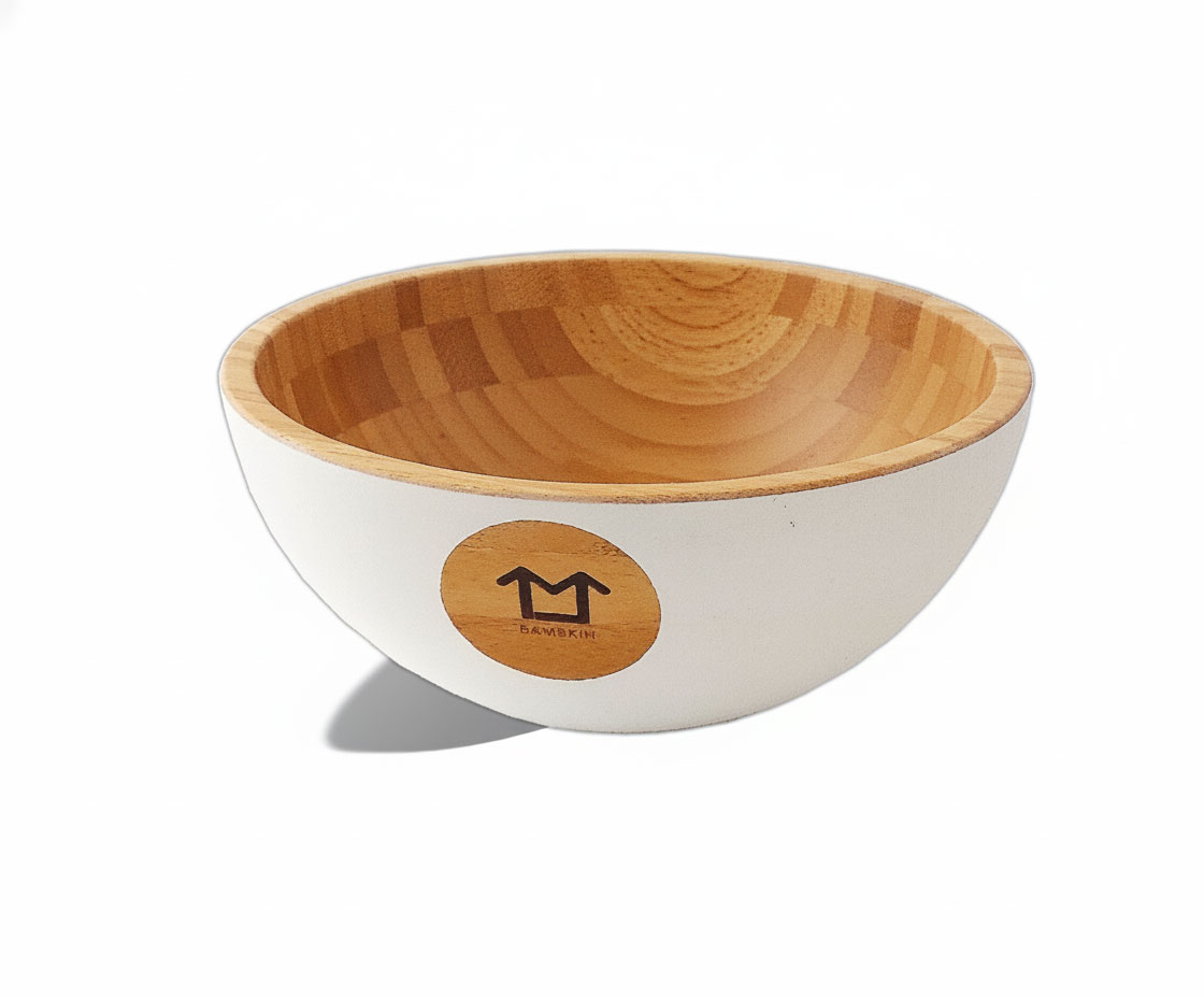 Die Innenseite zeigt die unverwechselbare Bambus-Musterung. Die Außenseite ist im matten Weiß pulverbeschichtet.