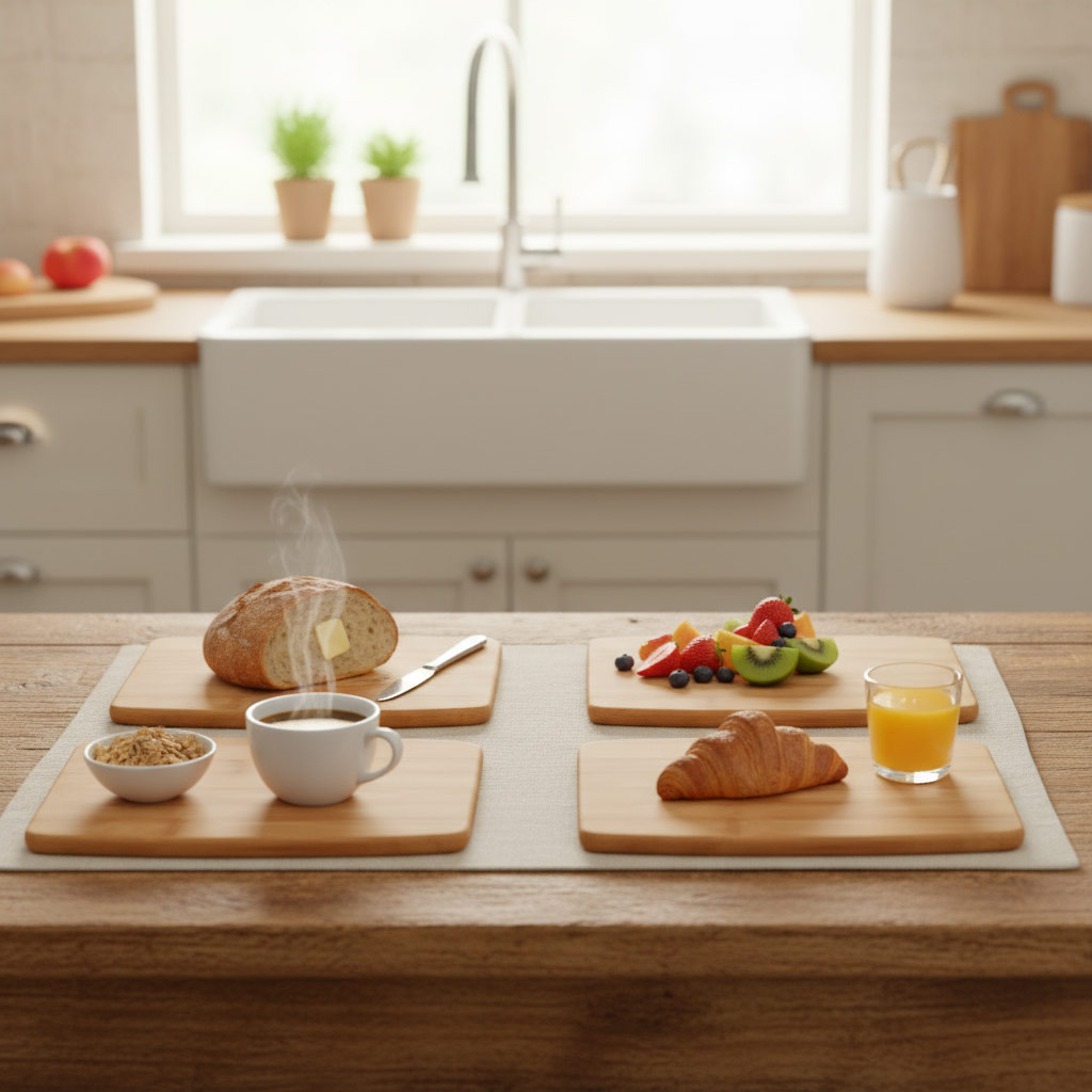 Ob als Schneidunterlage, Servierbrettchen oder Brotzeitbrett für Frühstück oder Abendessen, die kleinen Helfer sind vielseitig verwendbar.