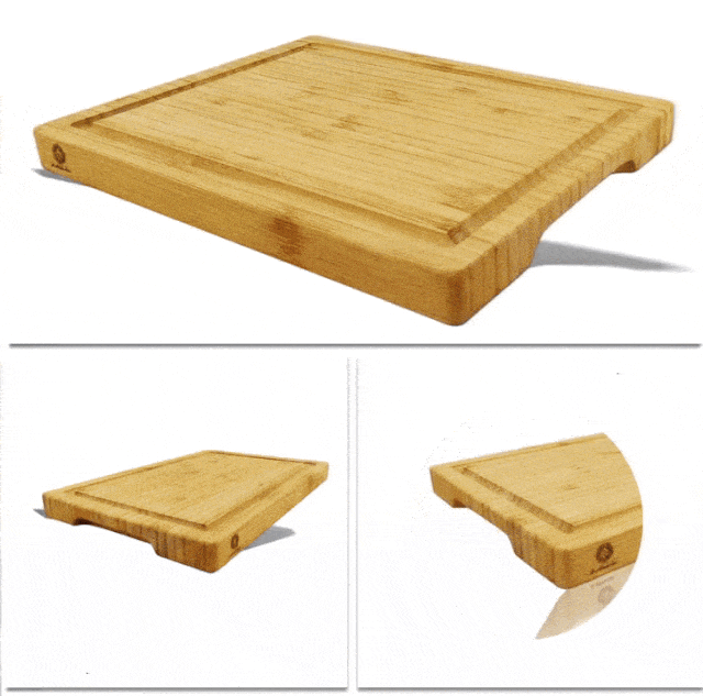 - Vielseitig verwendbar – mit Saftrille und Griffmulden